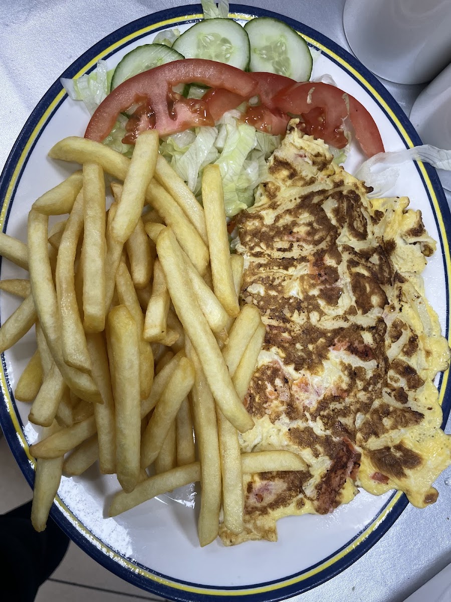The omelette is nice, comes by default with fries. They've enlarged the space in 2024 compares to what I saw in 2019. Slightly on the expensive side but the staff is very nice. Vegetarian choices are very less but you can still manage.